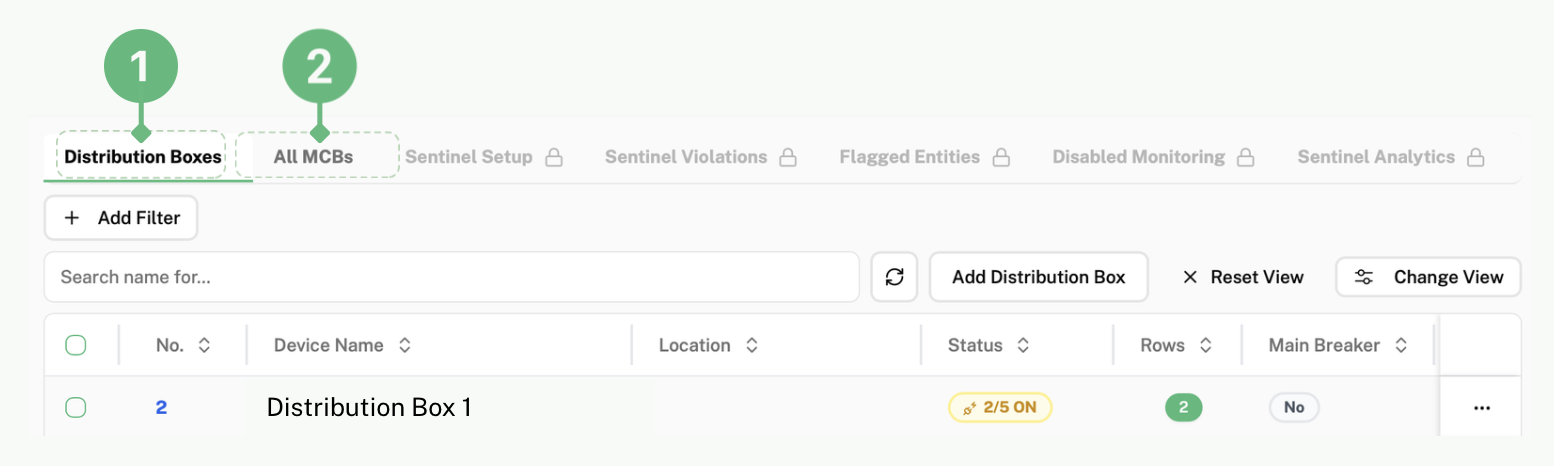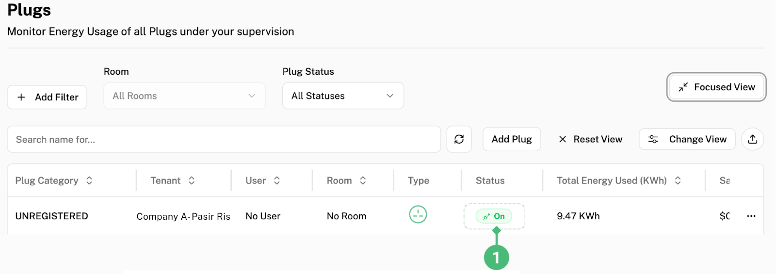To access Tenant’s Plugs, click on “Plugs” labelled as 1 above. Here, you will be able to view all plugs under this tenant.