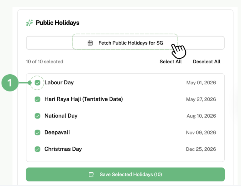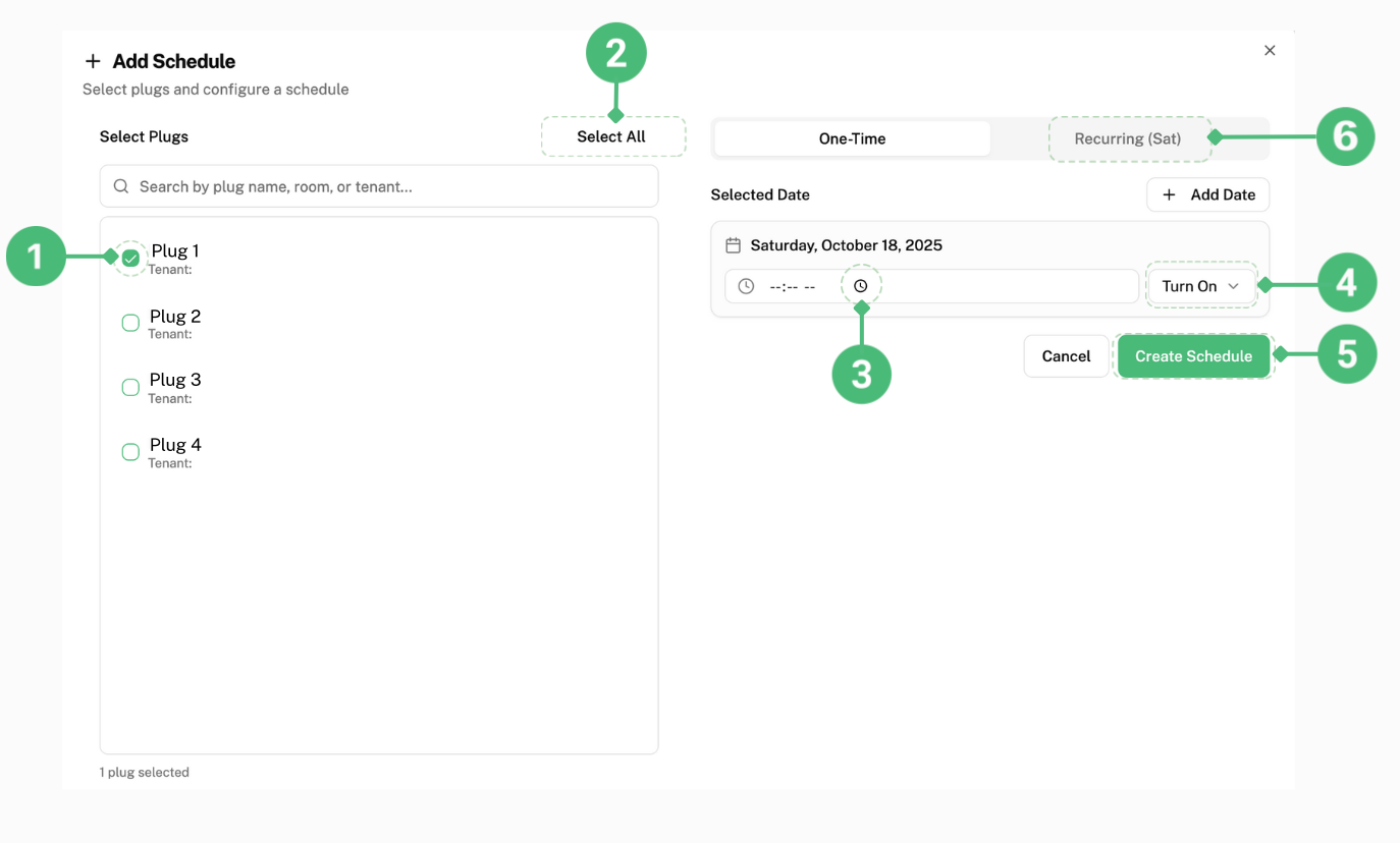 To set a schedule for all the plugs in your system on this date, click on “Select All” labelled as 2.