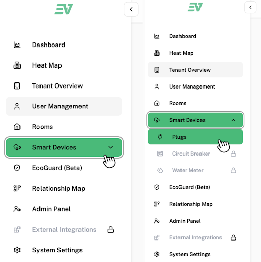 To understand the relationship between tenants, users, rooms, and plugs, refer to the System Hierarchy & Relationship page.